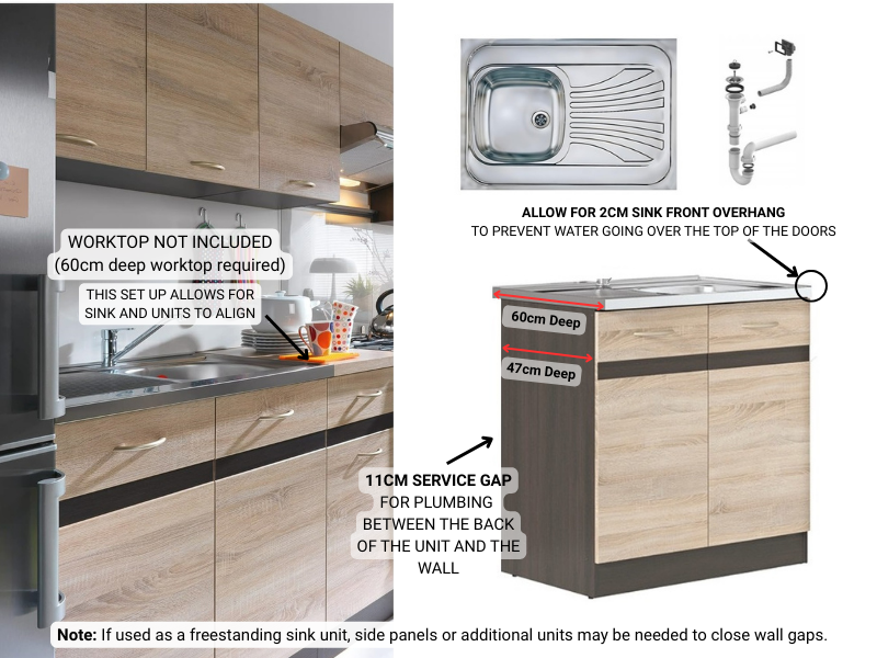 Worktop Not Included: You must supply your own; fits 60cm deep worktop.