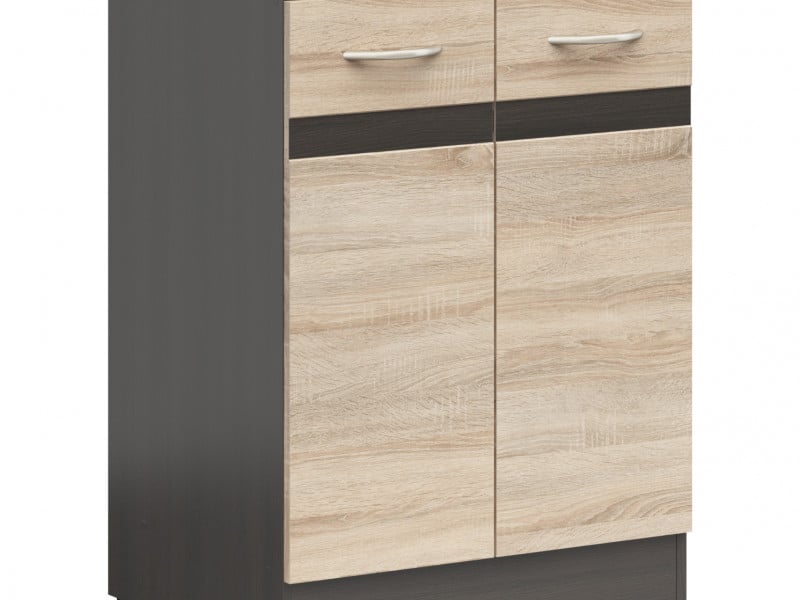 Junona 600mm Base Kitchen Cabinet 2 Door Cupboard, the cabinet comes in Wenge Matt with a Sonoma Oak Effect Door
