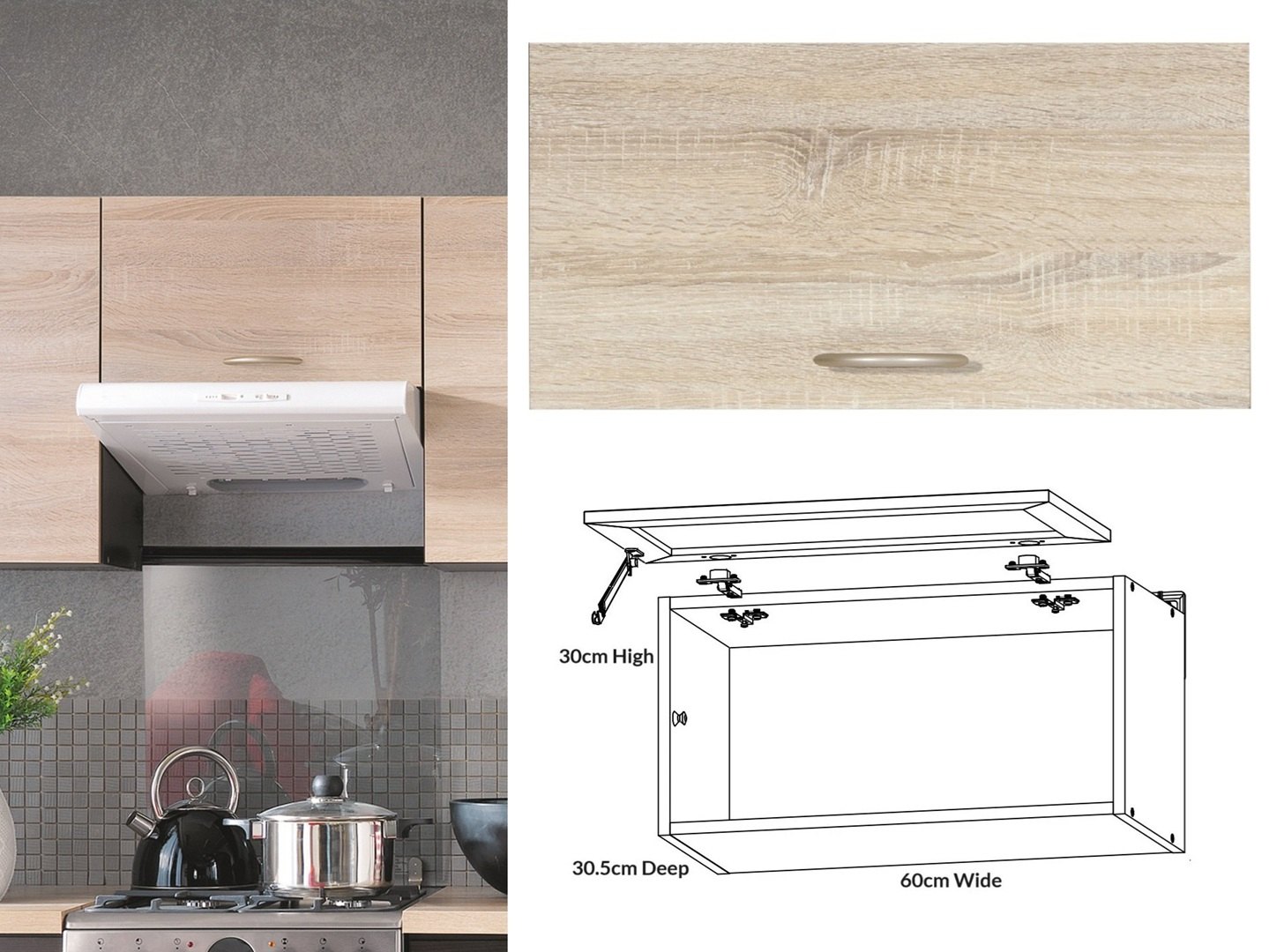 Bridging Unit Kitchen Wall Cabinet 600mm Extractor Housing Half Height Light Oak Effect Lift Up Door – Junona