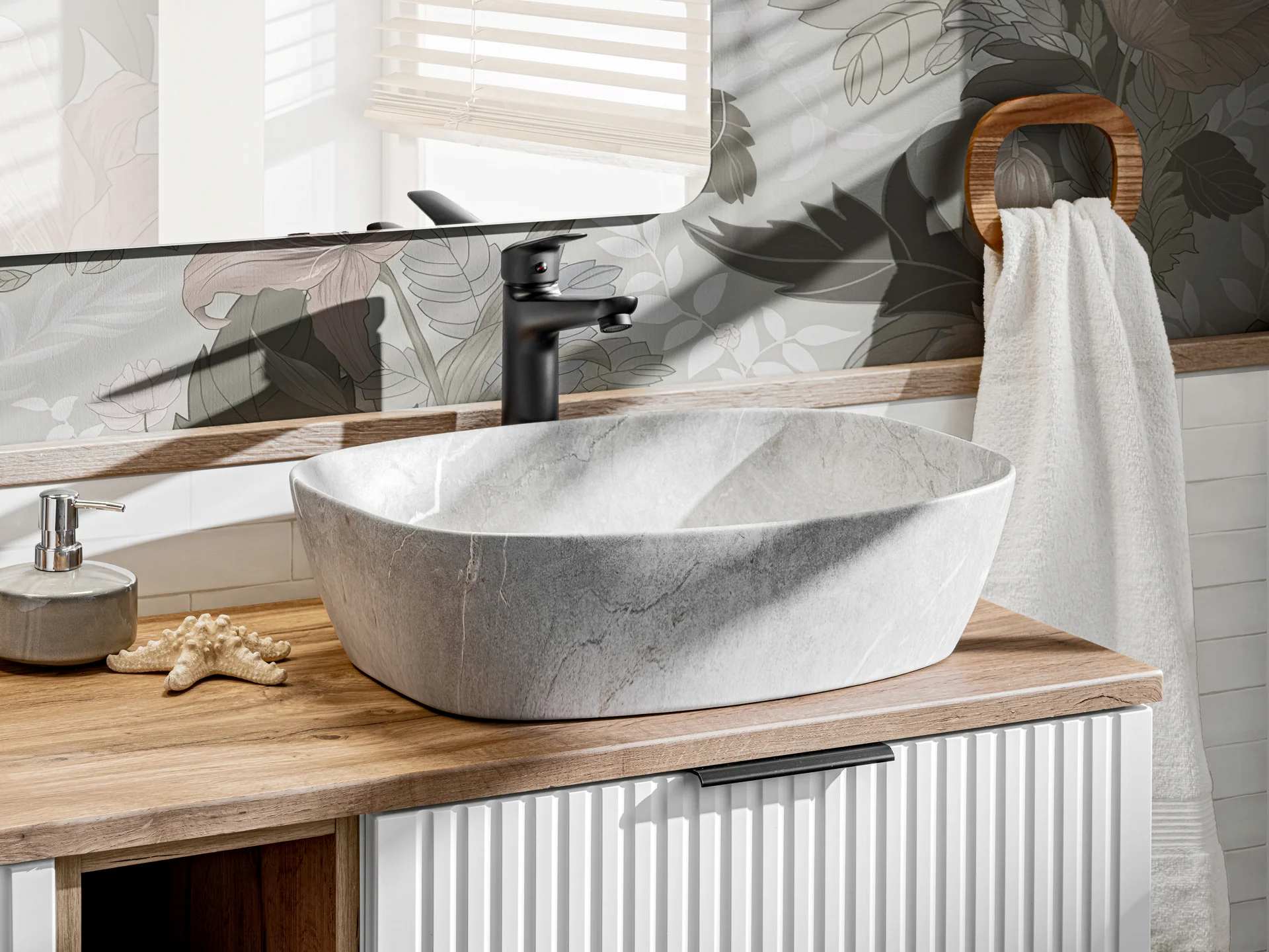 Double Vanity Unit 1200mm Fluted White Bathroom Oak Countertop Tall Cabinet Sinks Wall Set Ribbed Modern – Adel