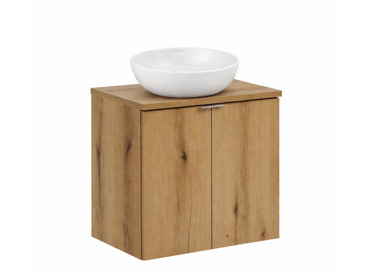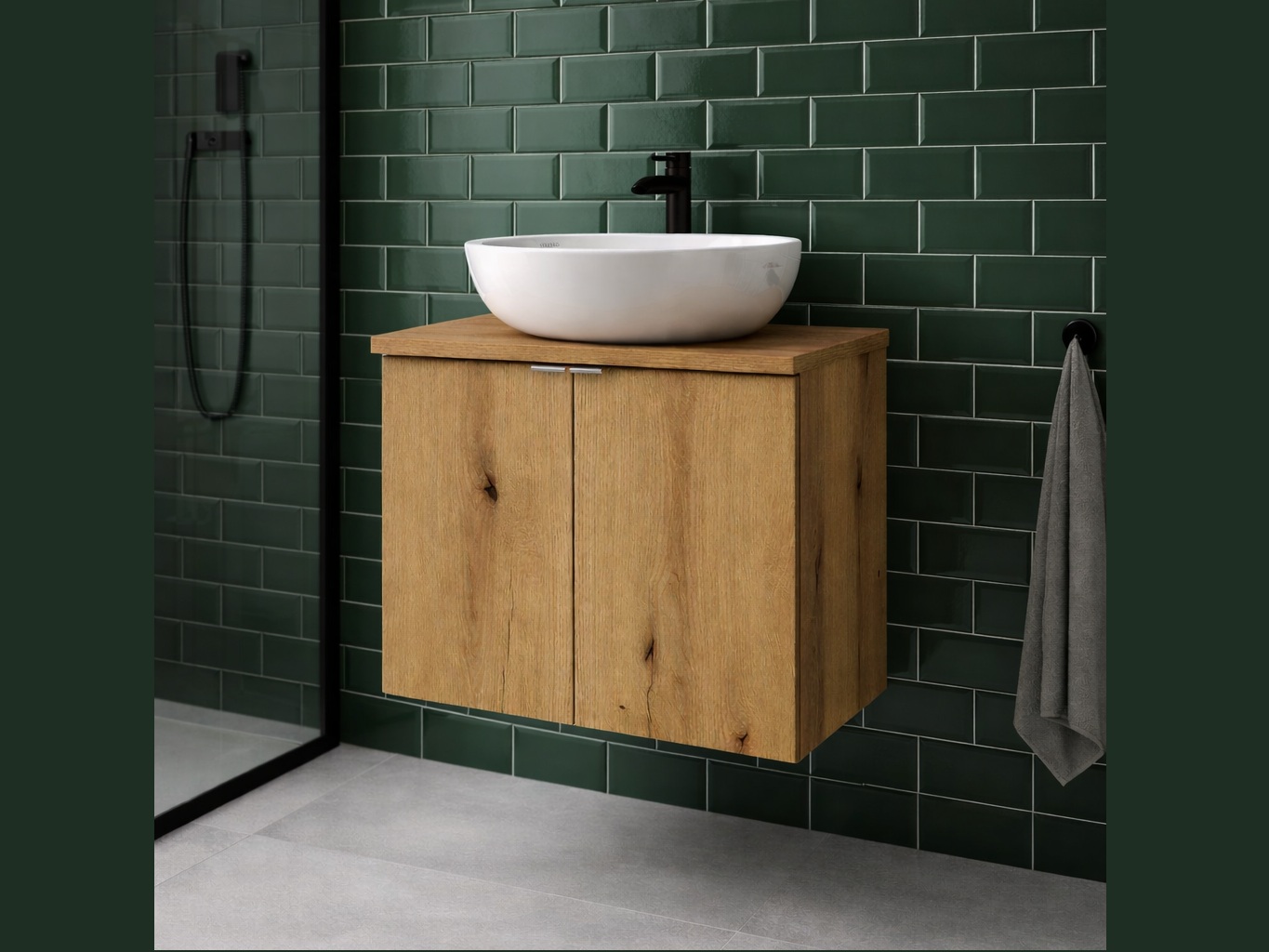 600mm Vanity Unit with Basin Bathroom Floating Wall Hung Countertop Cabinet Coastal Oak – Nova