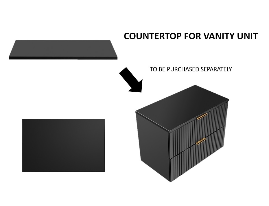 Bathroom worktop 800mm black effect countertop. Vanity unit worktop 800 mm length in MDF black effect countertop. Bathroom worktop for Adel wall mounted floating bathroom cabinets with Textured Ribbed fronts. You can choose either black or white cabinets.