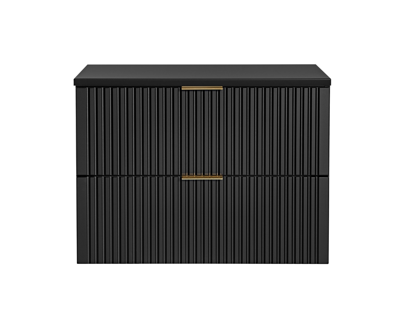 Bathroom Vanity Unit Black Wall Drawer Cabinet 600mm Floating Ribbed Modern Furniture - Adel