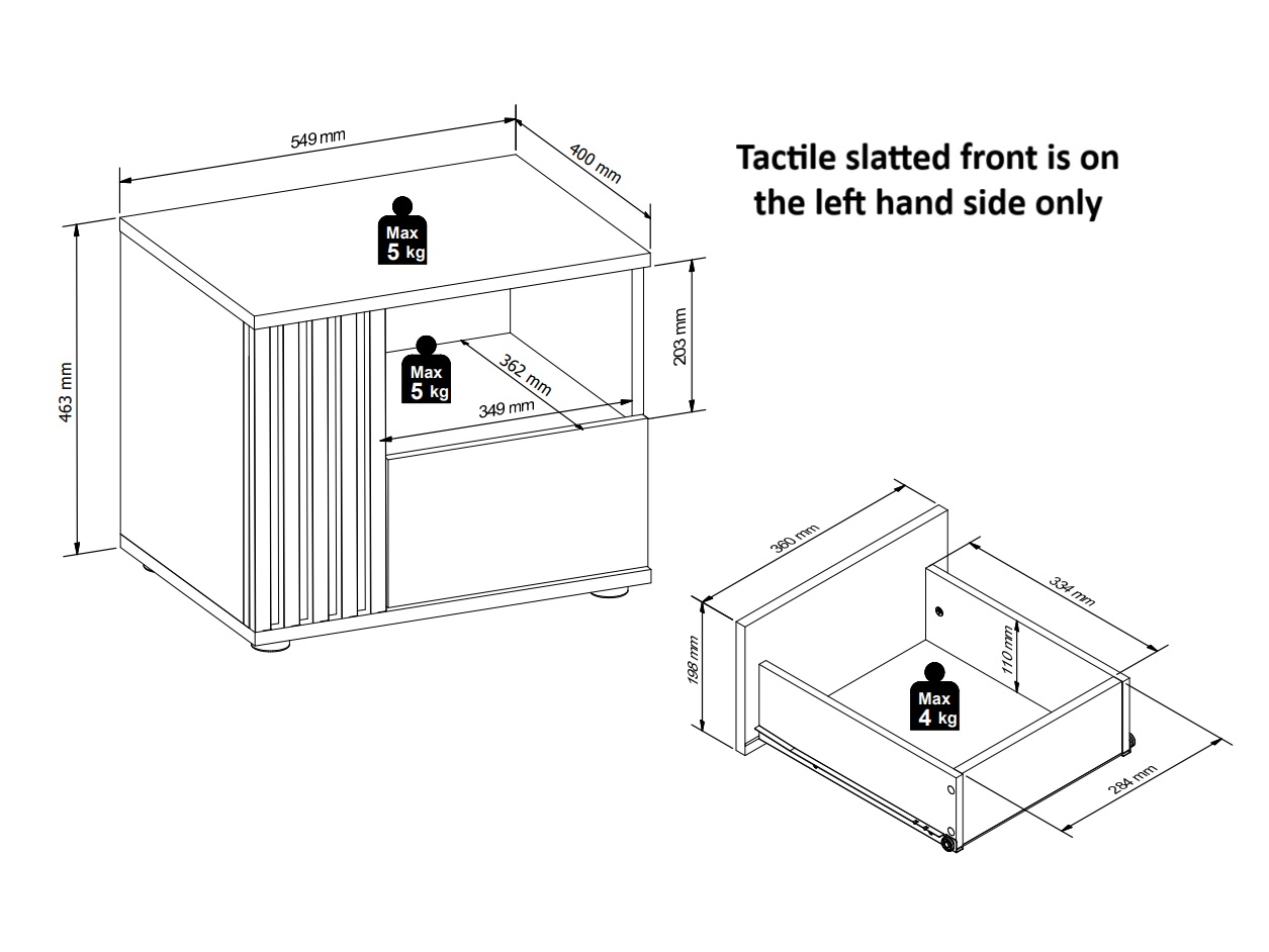Please Note: This unit can only be assembled as pictured with panelling slats on the left – matching right hand bedside can be found here!