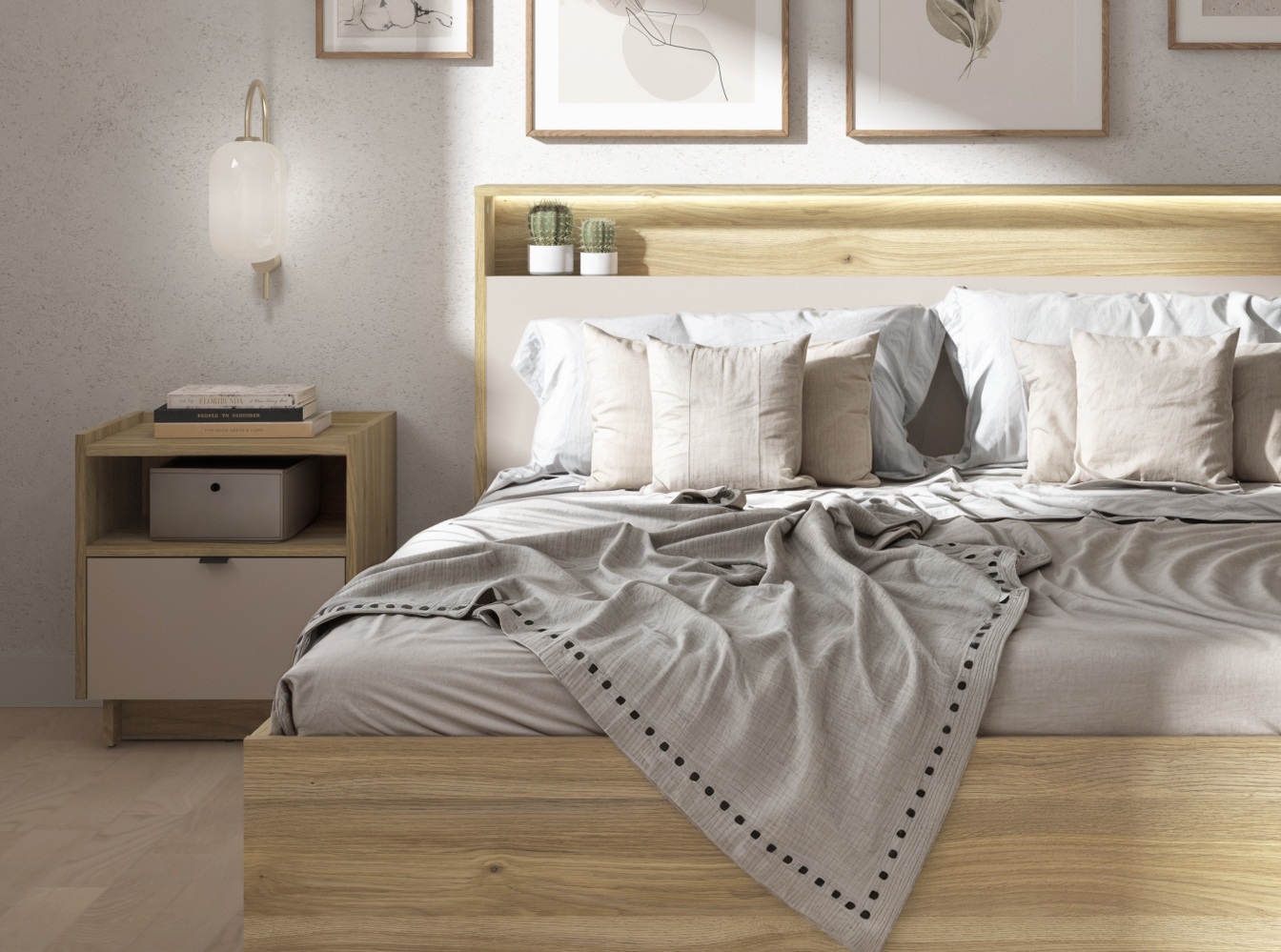 Dalva Bedroom Furniture in Cashmere Beige and Oak