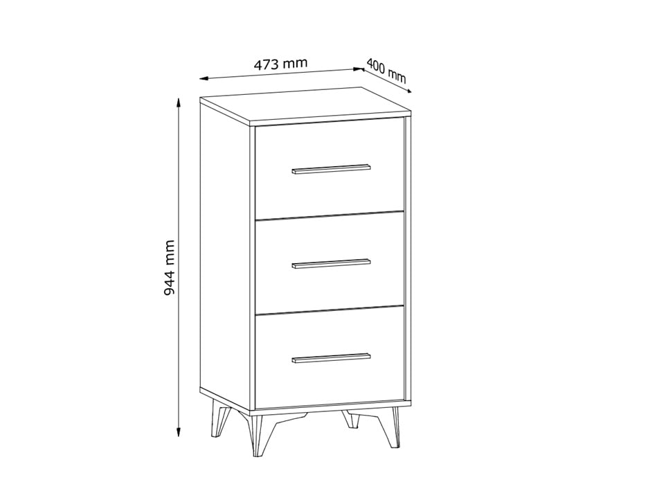 The 3 drawer chest unit is finished in a durable laminated board with black edging and matching black handles and legs that create a contemporary contrast.