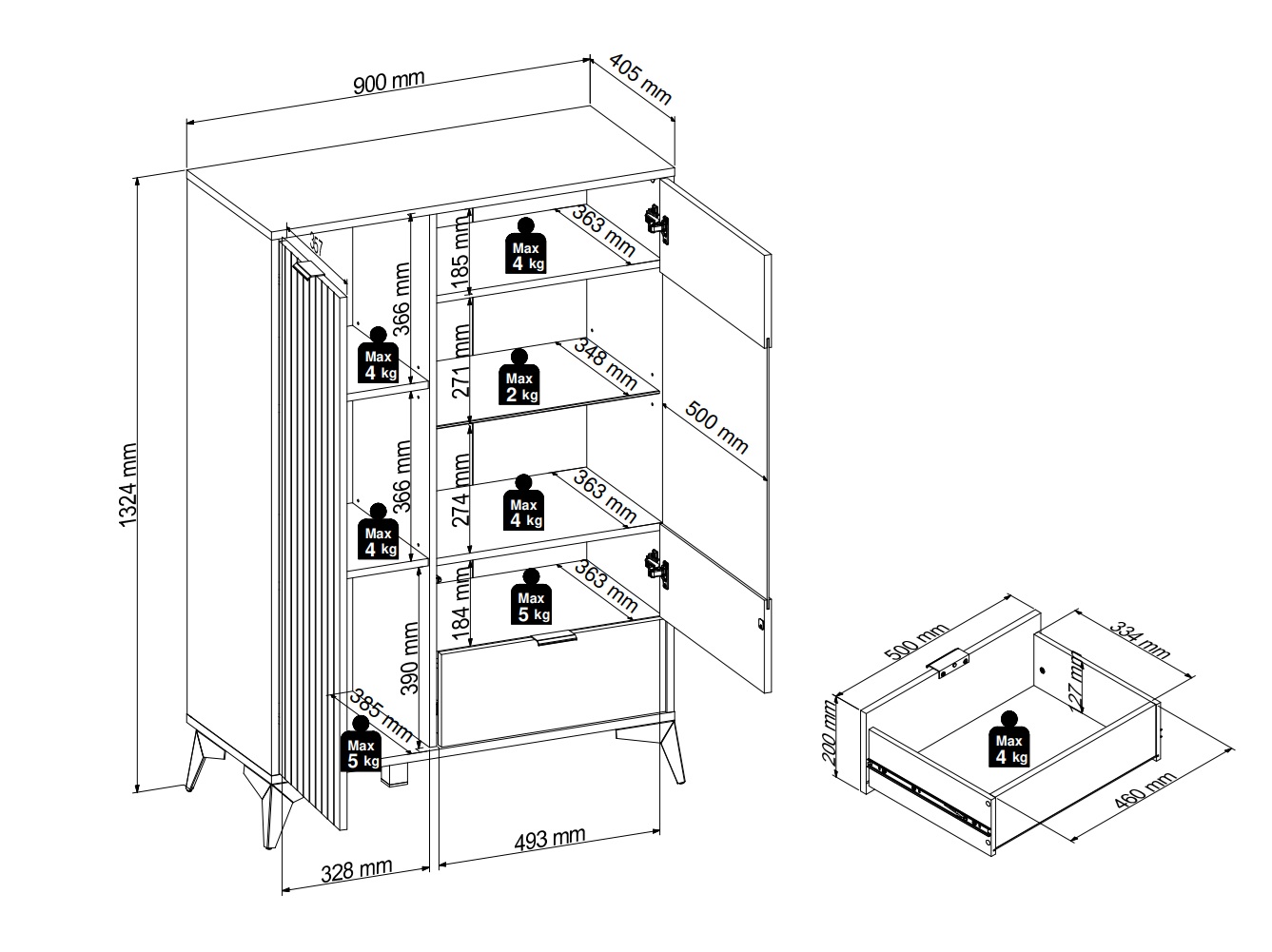 Size: 133 cm (H); 90 cm (W); 41 cm (D)