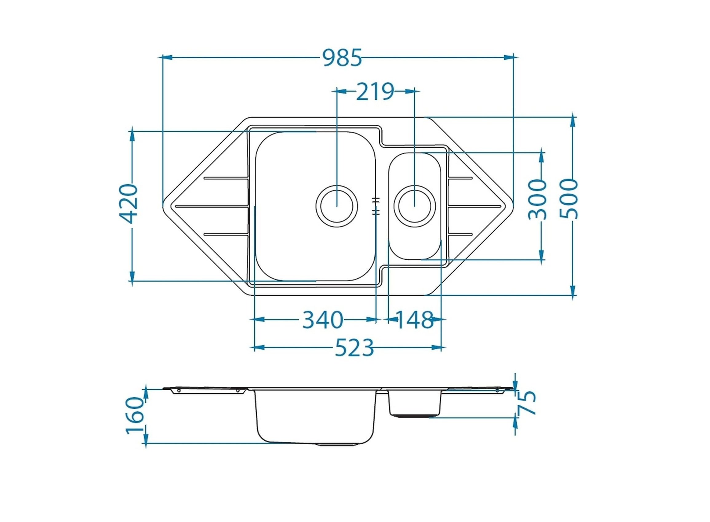 - Bowl dimensions (mm): 340 x 420 x 160 / 148 x 300 x 80