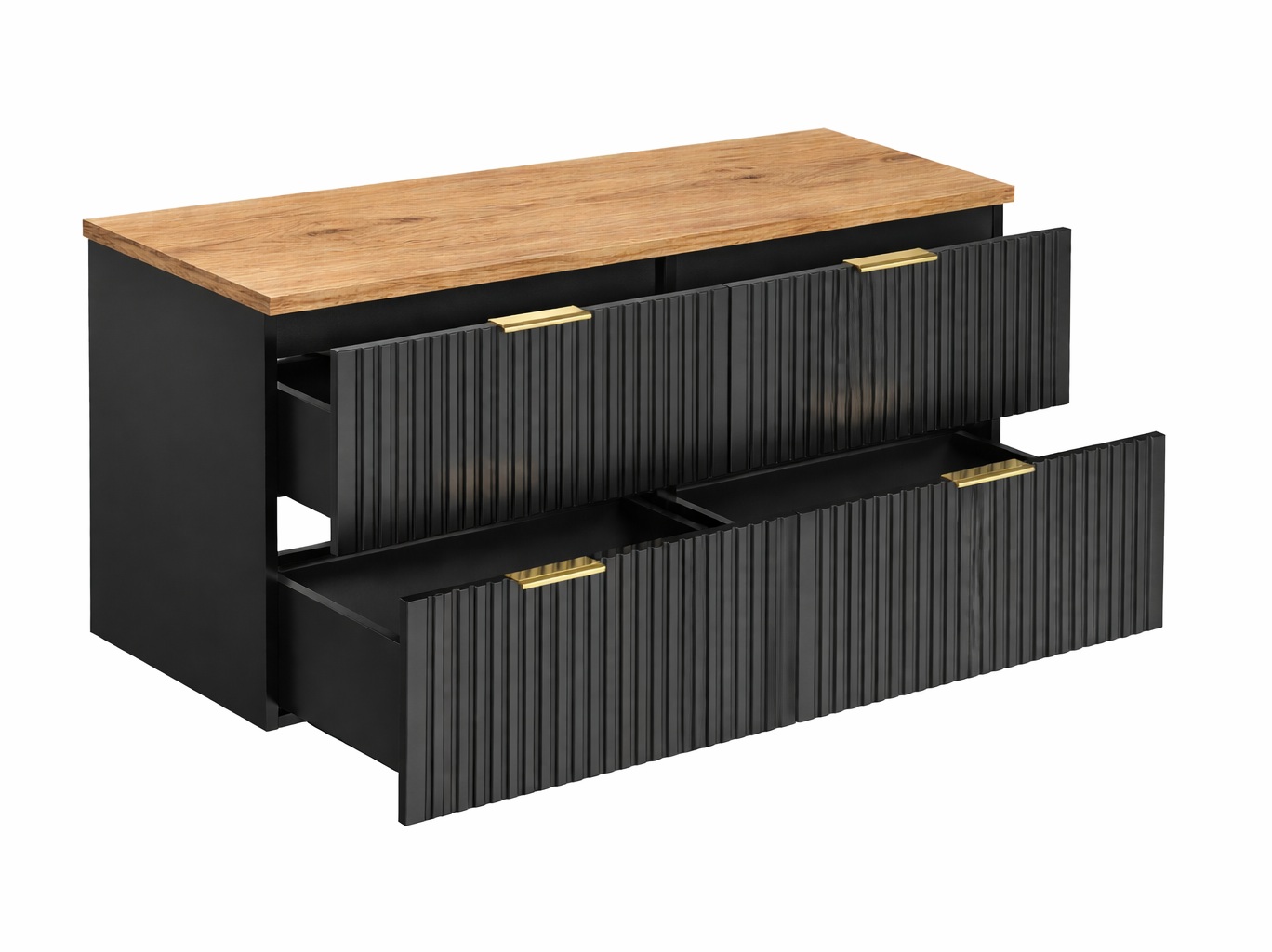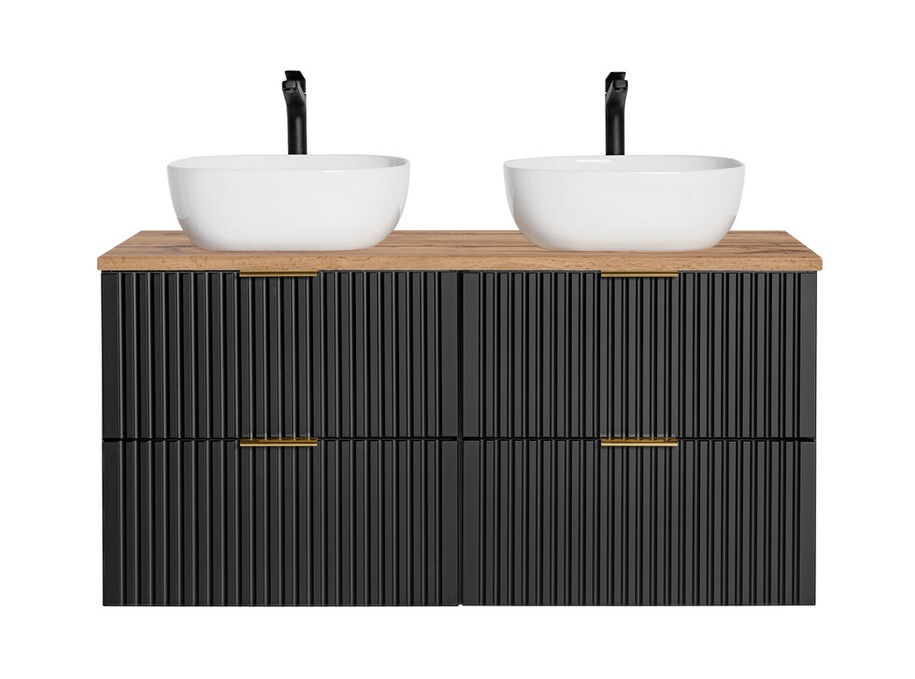 Double Vanity Unit with Basin 1200mm Oak Countertop Black Bathroom Cabinet Fluted Wall Hung Floating Drawers – Adel