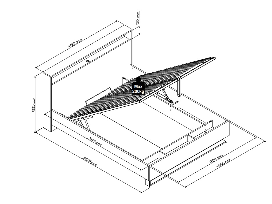 Please Note: This bed frame takes mattress with max width 160 cm and length 200 cm.