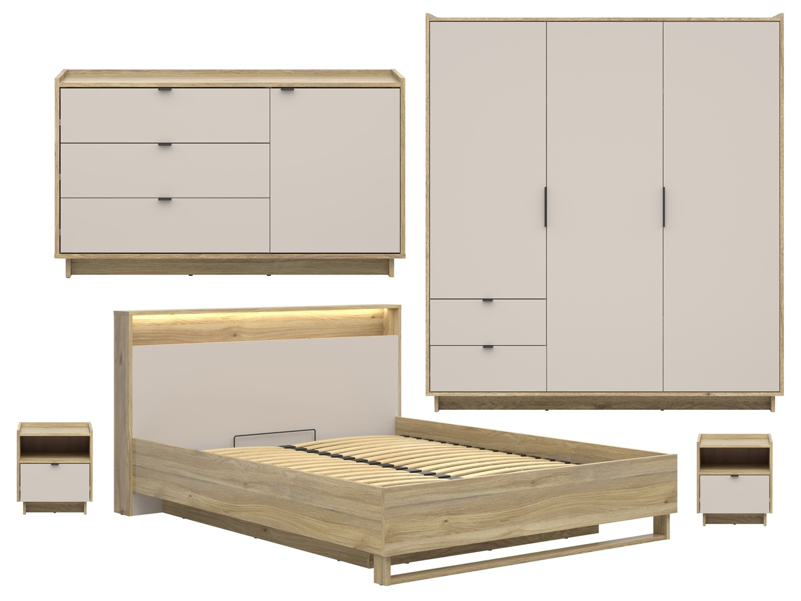 Dalva Bedroom Furniture in Cashmere Beige and Oak