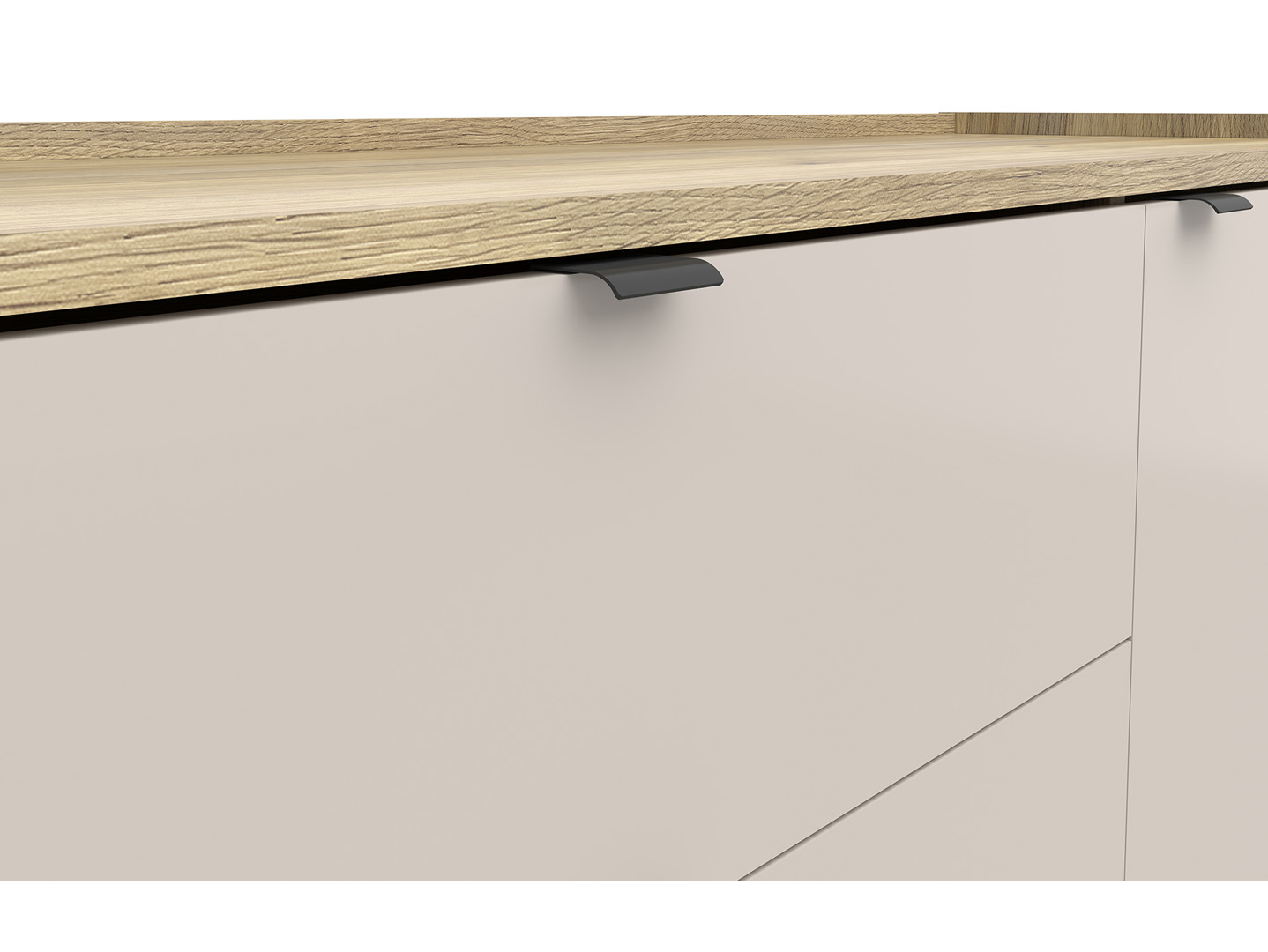 The Dalva bedroom furniture range reflects modern Japandi style, blending Japanese simplicity with Scandinavian minimalism. Soft Cashmere Beige fronts create a calm and elegant look, while Mauvelle Oak effect bodies add warmth and natural texture.