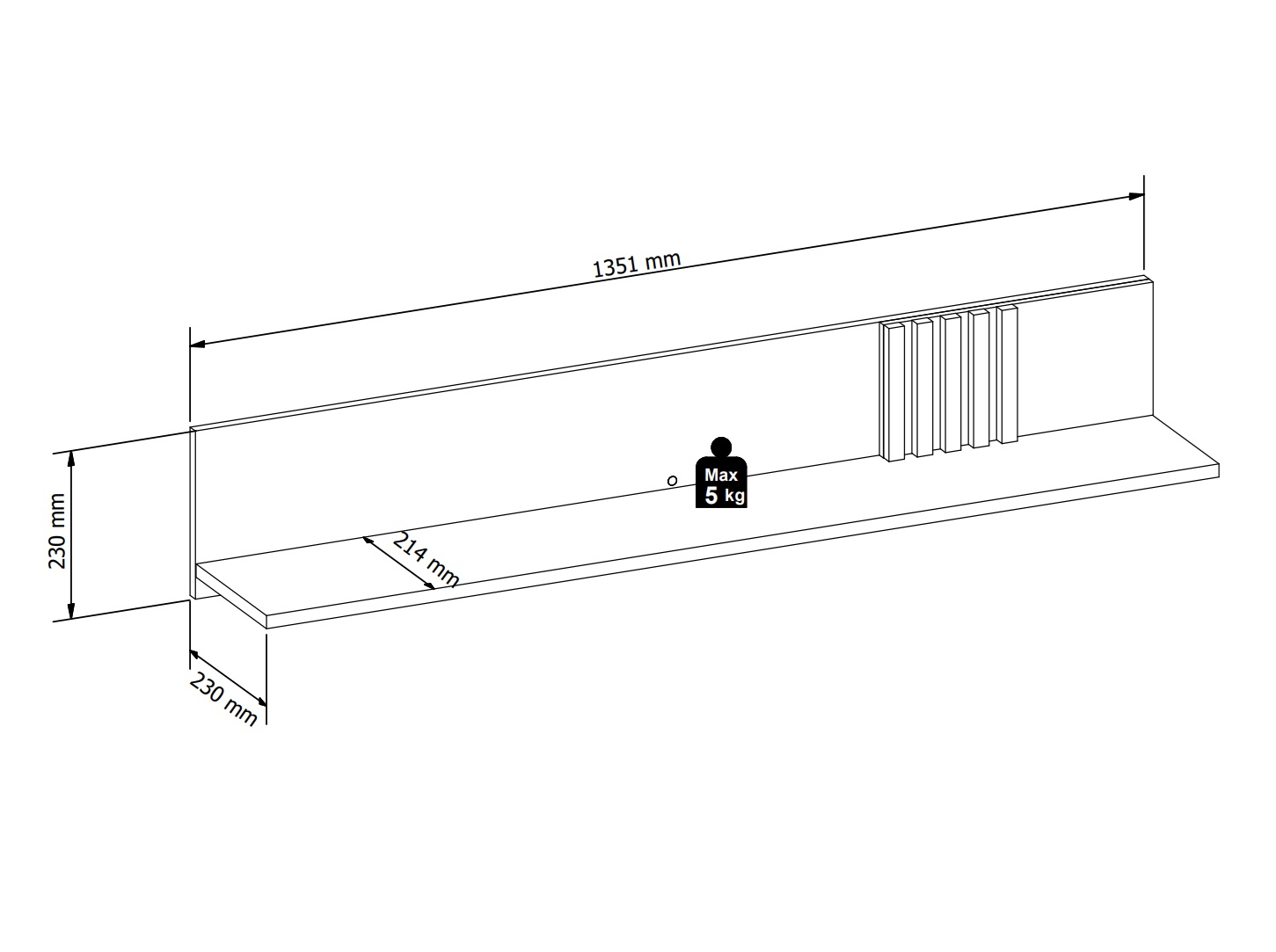 Size: 23 cm (H); 135.1 cm (W); 23 cm (D)