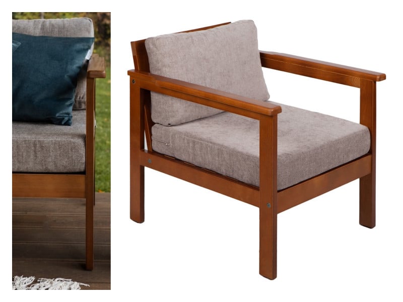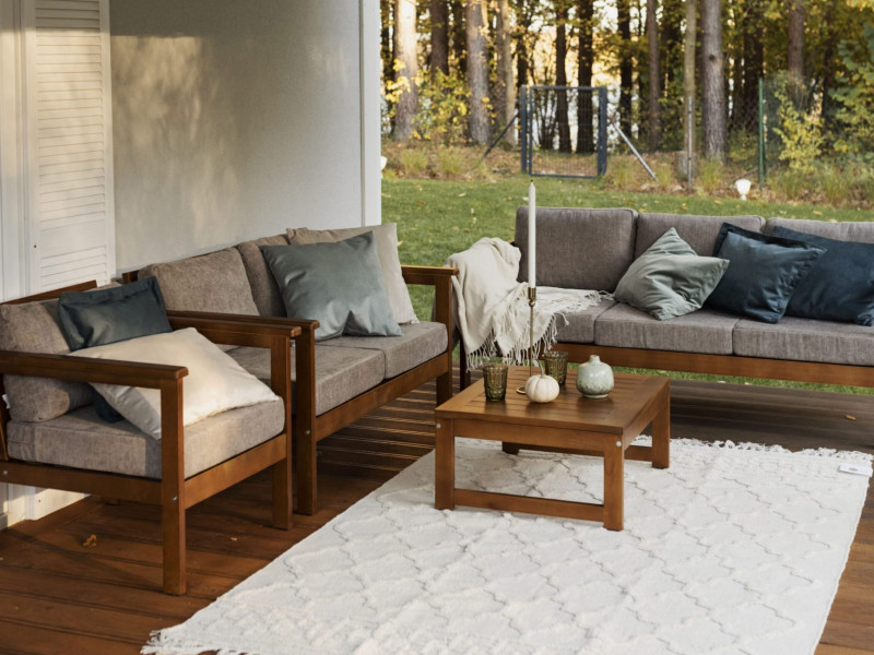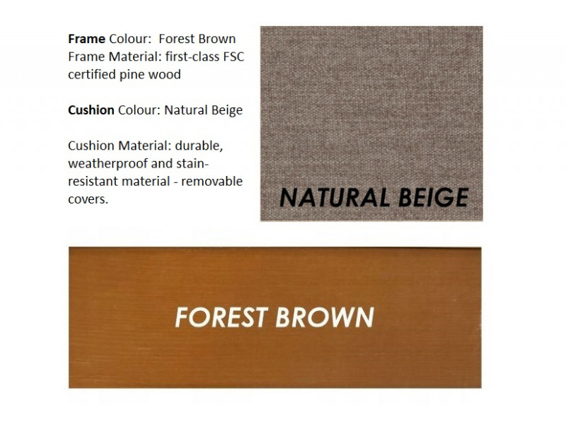 Quality wooden garden furniture designed for outdoor seating on a terrace, patio or garden. Garden seating furniture features a sturdy FSC certified pine wooden frame and comes with easy care weather resistant cushions offering perfect seating for any outdoor space.