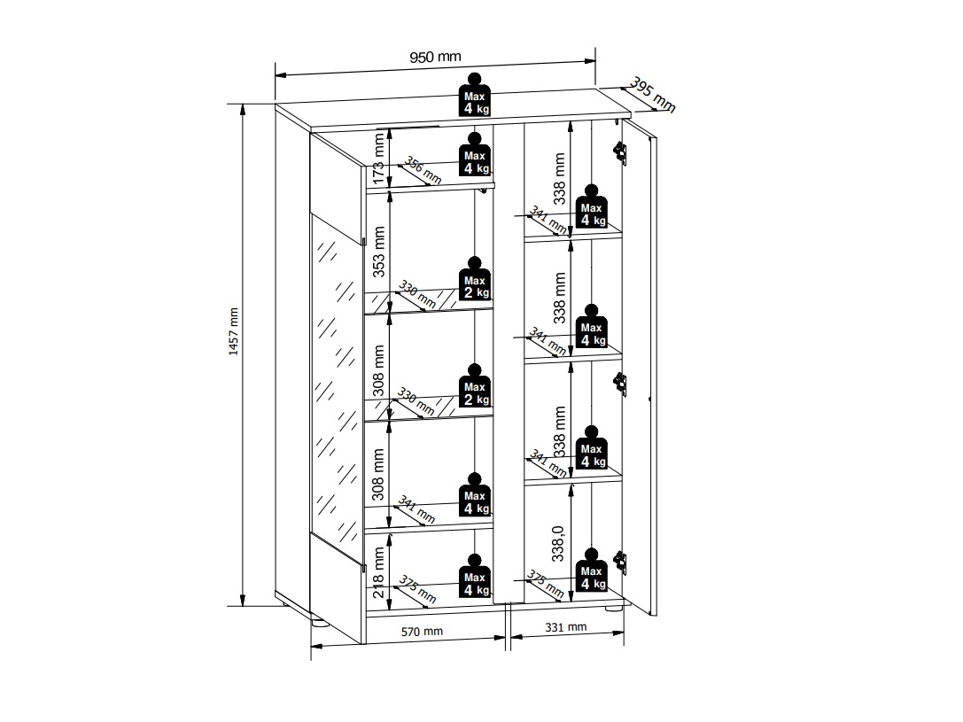Size: 146 cm (H); 95 cm (W); 39.5 cm (D)