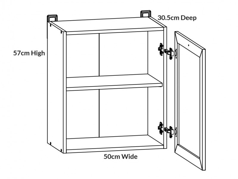 Junona 500mm Wall Kitchen Cabinet – 1 Door Cupboard (Left or Right Opening)