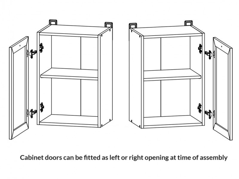 Includes: body, fronts, handles, metal hinges, fixings, and shelf.