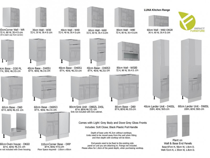The Luna kitchen furniture range was created with streamlined Scandinavian chic design in mind. Furthermore, its Light Dove Grey Gloss finish offers an elegant yet modern aesthetic, perfect for optimising space without sacrificing style.