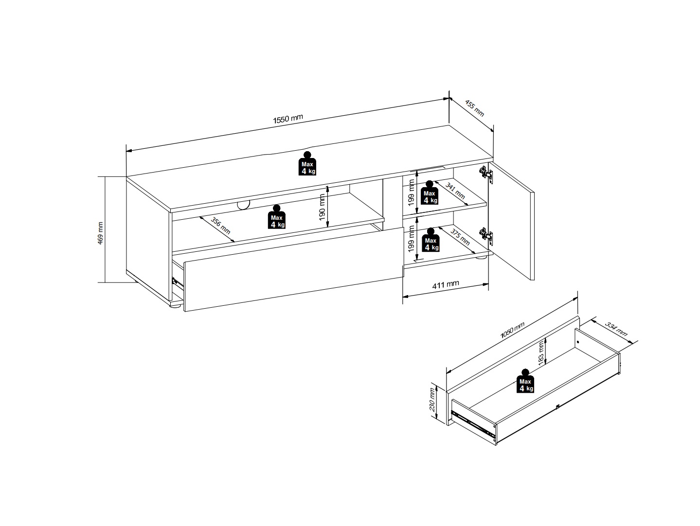 - TV Cabinet with 1 drawer, 1 door, open shelf with wire vents