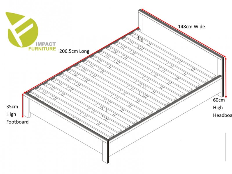Please Note: This is a European size bed frame and this bed frame takes mattress with max width 140 cm and length 200 cm (NOT INCLUDED)