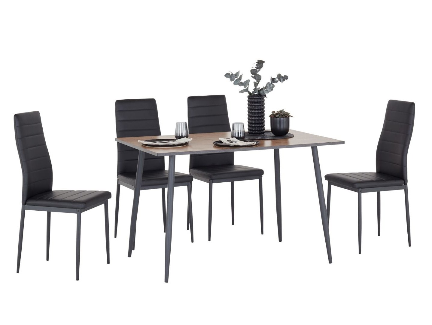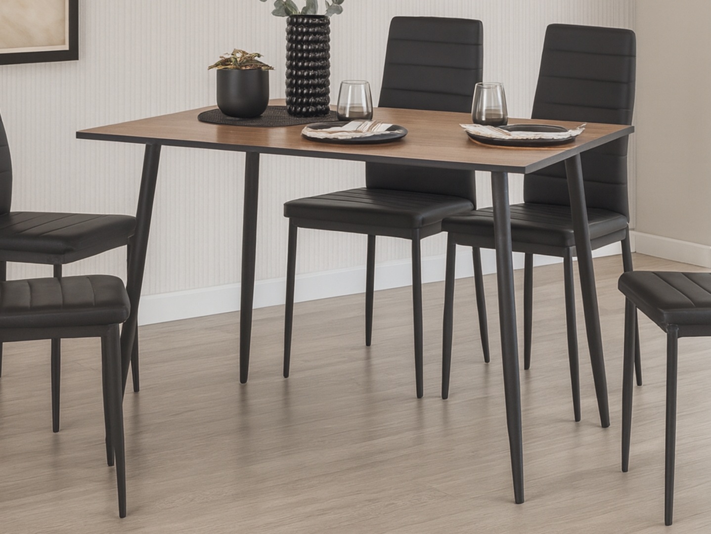 Small Kitchen Table 4 Seater Narrow Dining Table Natural Wood Effect Top Black Legs Scandi Modern – Tom