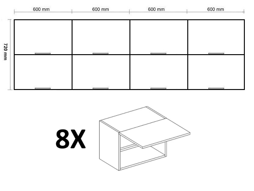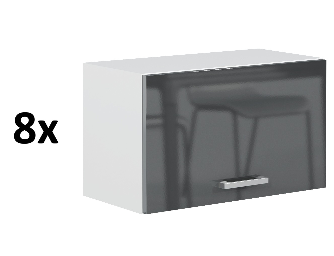 Storage Cabinet Set 8 Units 600mm Kitchen Utility Wall Half Height Lift Up Doors Gas Piston 240cm Grey Gloss – Luxe