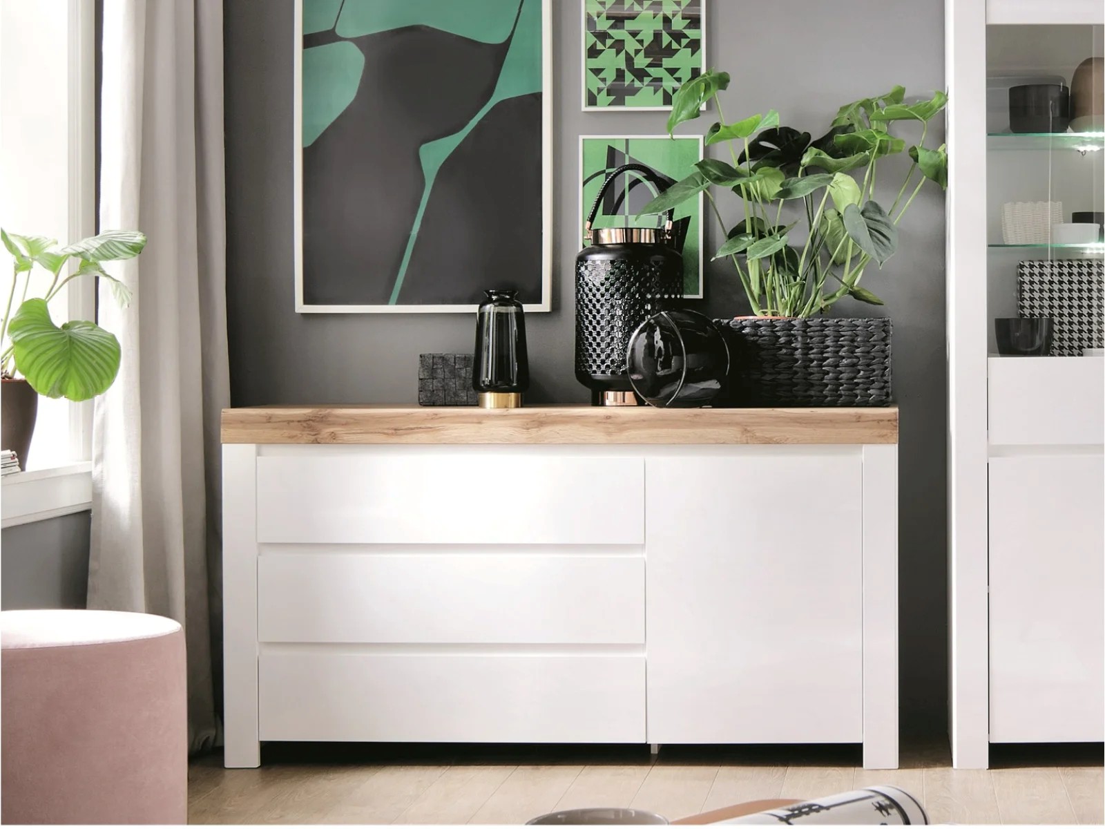 Modern Side Cabinet Small Storage Drawer Unit Sonoma Oak - Kaspian