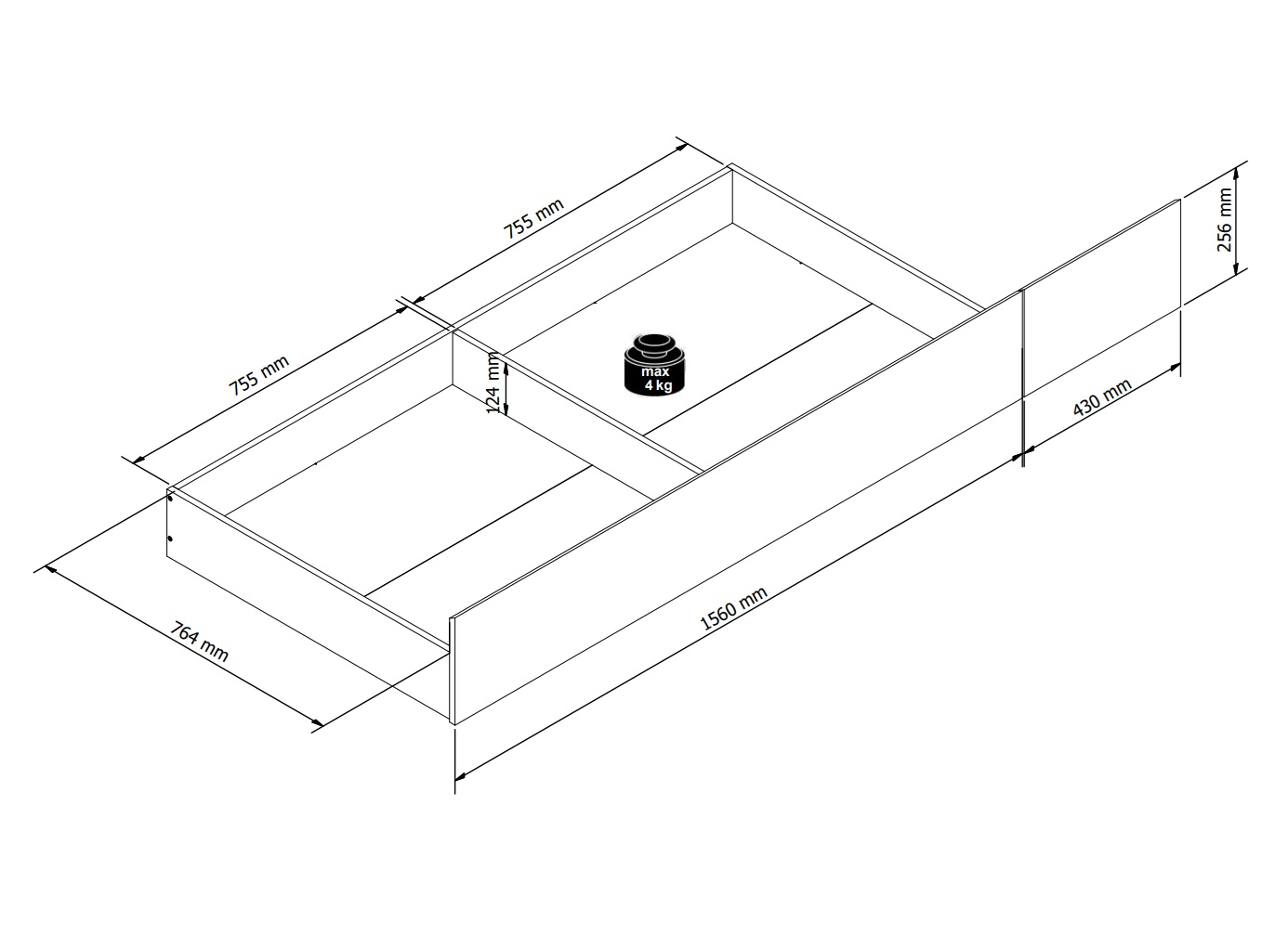 Drawer Size: 25.6 cm (H); 156 cm (W); 76.4 cm (D)