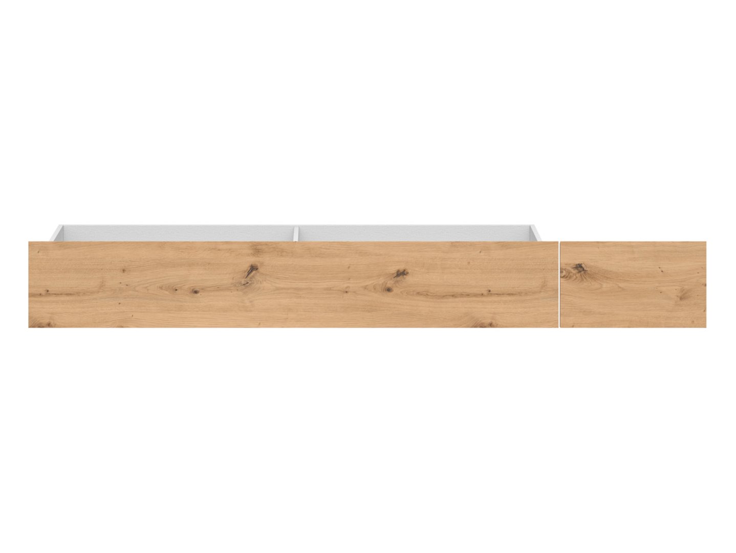 Underbed wheeled storage drawer in a rich Artisan oak effect. This reversible underbed drawer is fittable on either left or right of bed and includes blanking plate; the drawer and plate come in a scratch resistant finish.