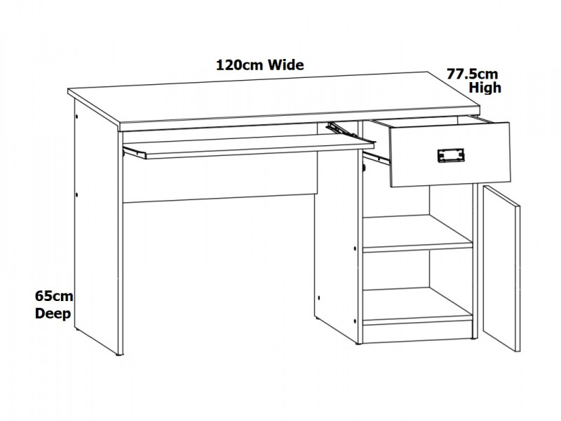 5 cm (H); 80 cm (W); 57 cm (D)1 x Malcolm – Desk Size: 77.