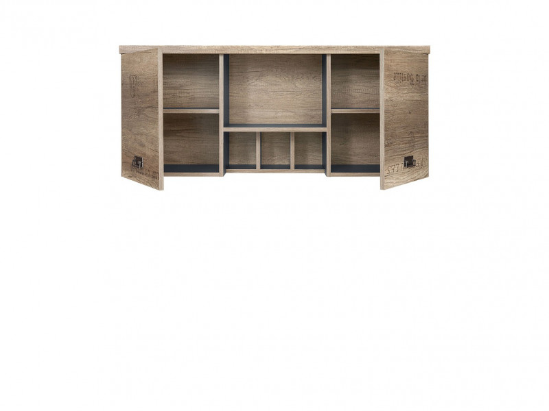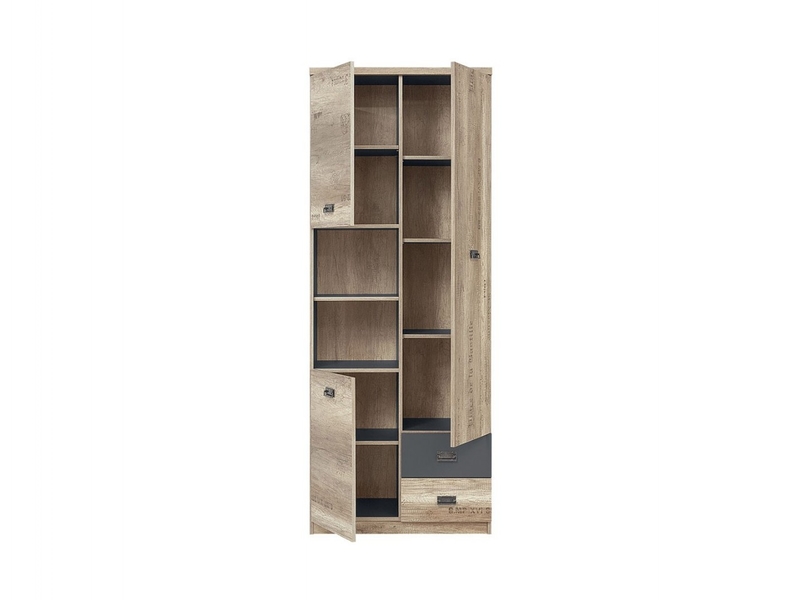 Malcolm furniture collection is finished in a durable laminate with body of the units in Oak Canyon Monument finish and fronts in the same finish with letter print effect on them and Grey Wolfram (matt grey) inserts.