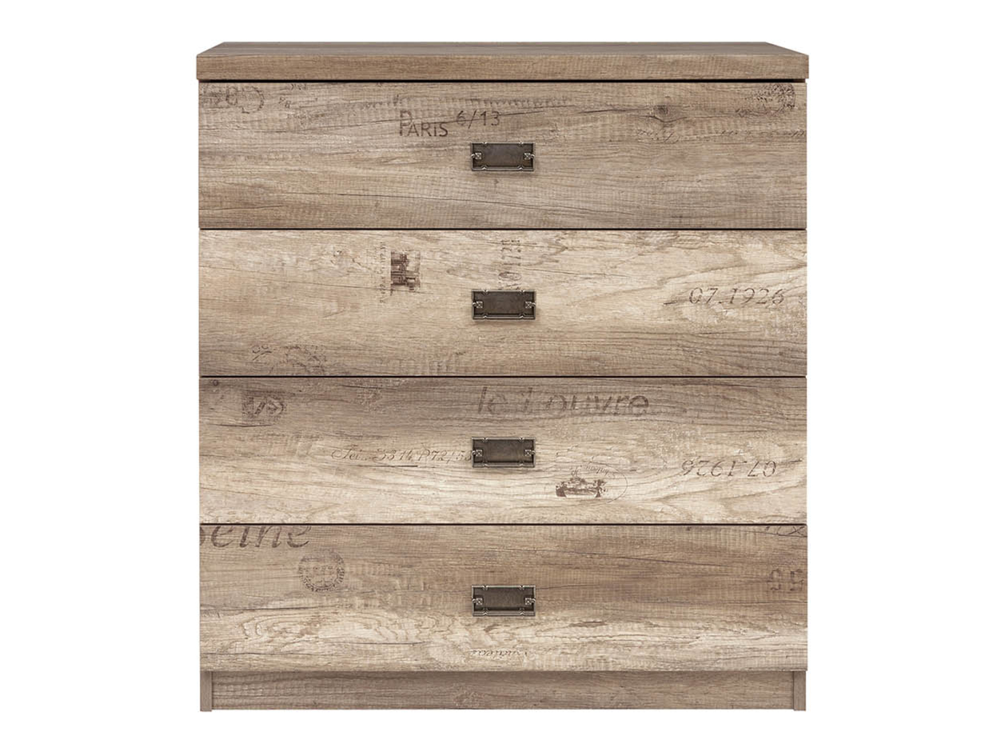 Moreover, the four wide drawers provide ample space for clothing, accessories, or household essentials. At the same time, the original 3D printed drawer fronts create a unique visual feature, while antique nickel metal handles add a refined finishing touch.