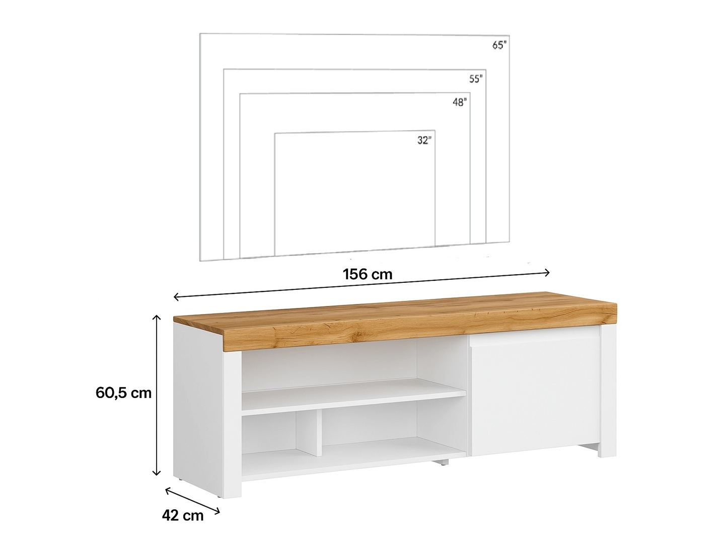 - 156cm Wide TV stand suitable for TVs up to 65 inches