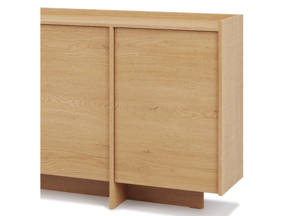 Modern Large Sideboard, designed to offer generous storage and a stylish contemporary look in a living room, lounge or bedroom. Finished in a high-quality, scratch-resistant Cremona Oak washed light oak effect, this unit brings a clean, elegant feel to any home. The handleless slab-front doors and sturdy base frame give it a sleek, minimalist appearance while ensuring long-lasting durability.