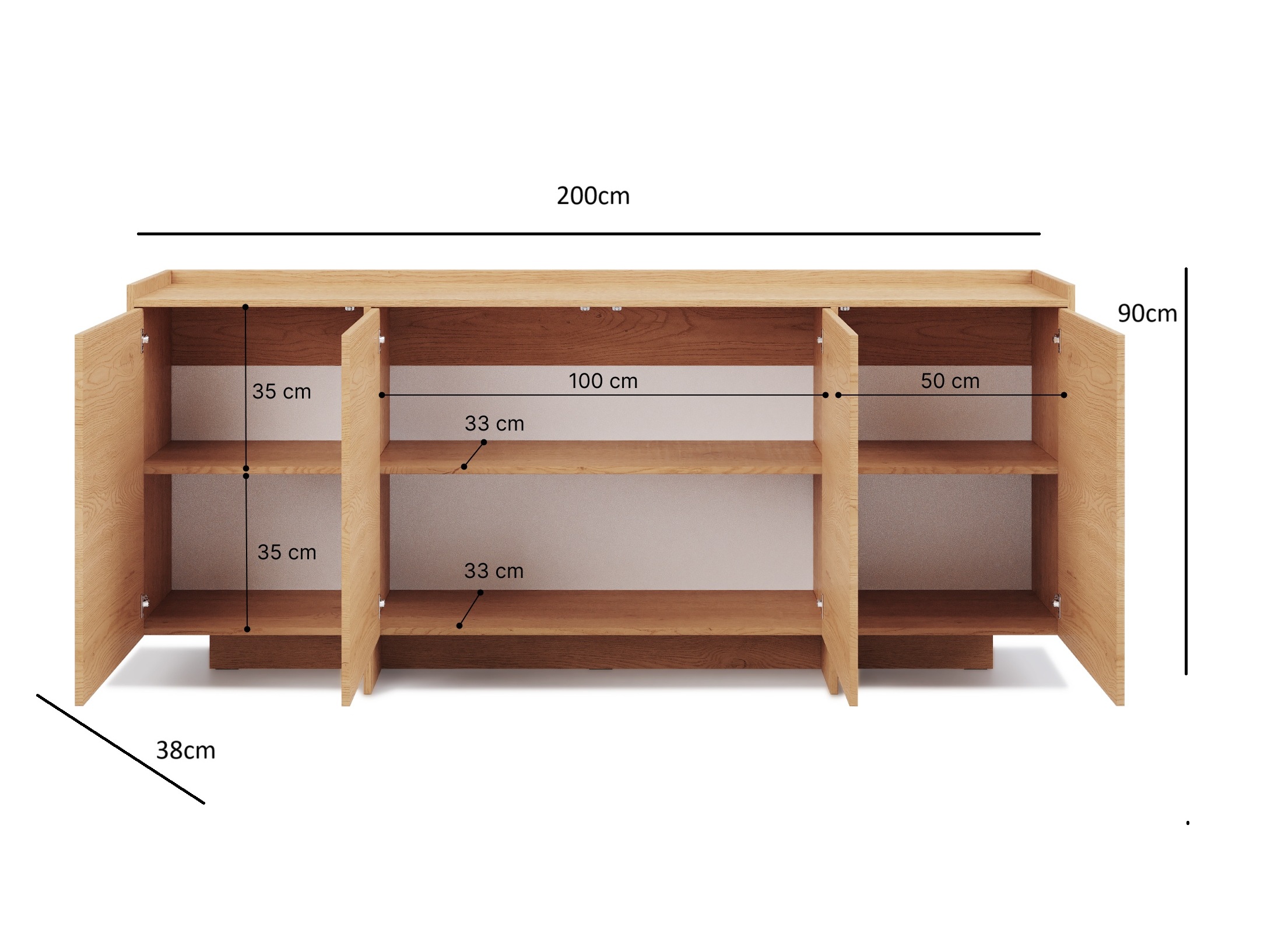 Wide 200cm sideboard cabinet offering generous storage space